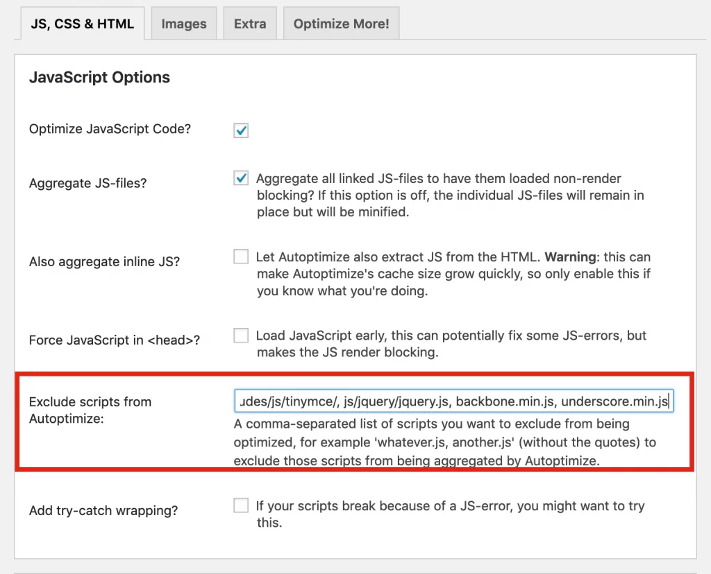 To solve this problem, we could exclude Backbone.js and underscore.js from autoptimize.